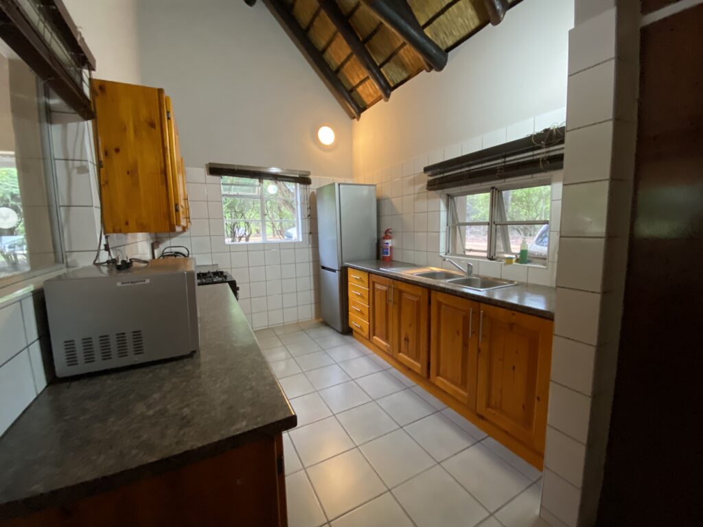 Biene hat uns einen Zaun Bungalow reservieren lassen. Ich schlaf in der Kochnische mit direktem River View und Zugang zum Kühlschrank. – ZAR 10.731,20/3
