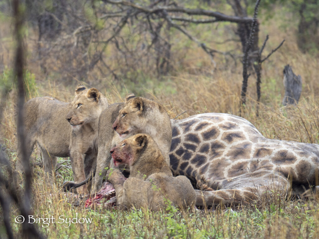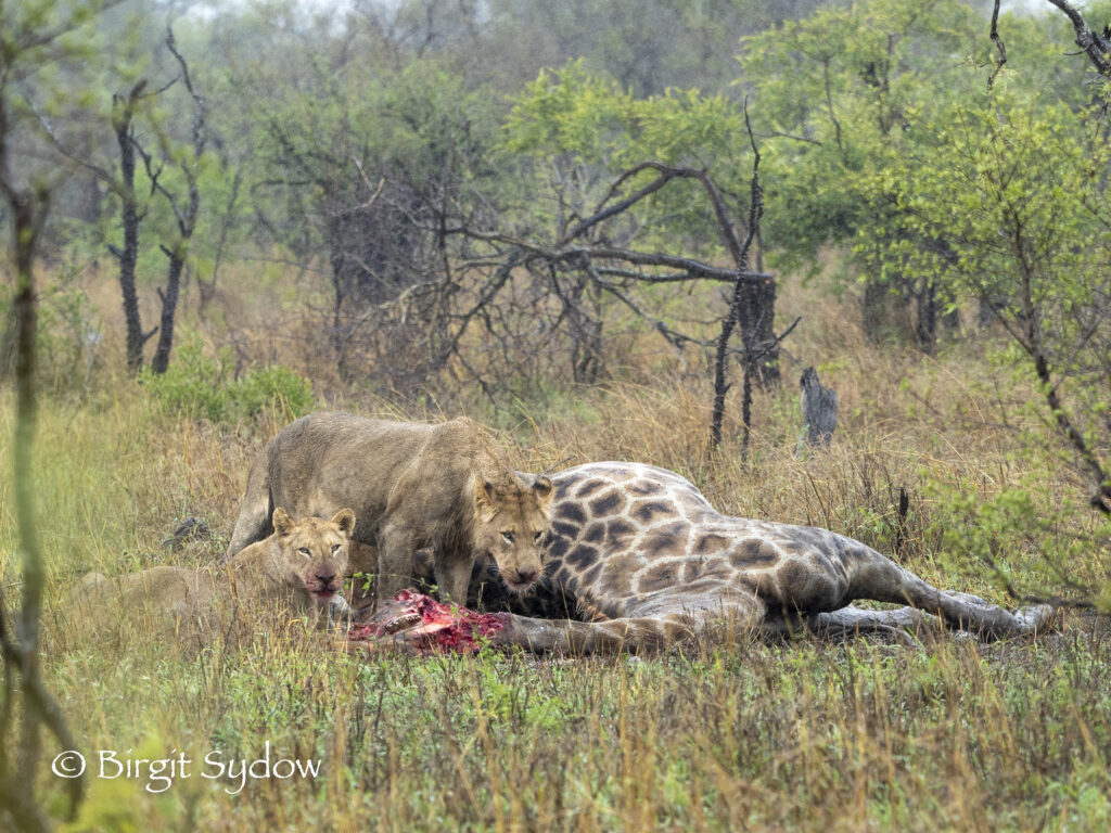 Also fuhr ich direkt raus. Erst die H1-4 Richtung Olifants bis zur S127. Hier sah ich zwei Honeybadger und einen Elefanten mit nur einem Tusk. Da aufgrund des Regens alles gesperrt war, drehte ich um und fuhr zurück und dann Richtung Orpen. Ein paar schöne Elefantenbullen. Ordenary Game. Irgendwann meldete sich das Netz zurück und in der Sighting Gruppe wurde ein Giraffenkill mit Löwen am Orpen Gate gemeldet. Nichts wie hin.