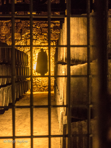 Mit der Linie 1 fuhren wir in die Altstadt und genossen, die Füße von der Kaimauer baumelnd, die Sonne und die Musik der Straßenmusikanten. Wir setzten mit dem Wassertaxi über und machten uns auf den Weg nach Sandeman, dort hatten wir eine Kellertour mit anschließender Verkostung von drei Portweinen gebucht.