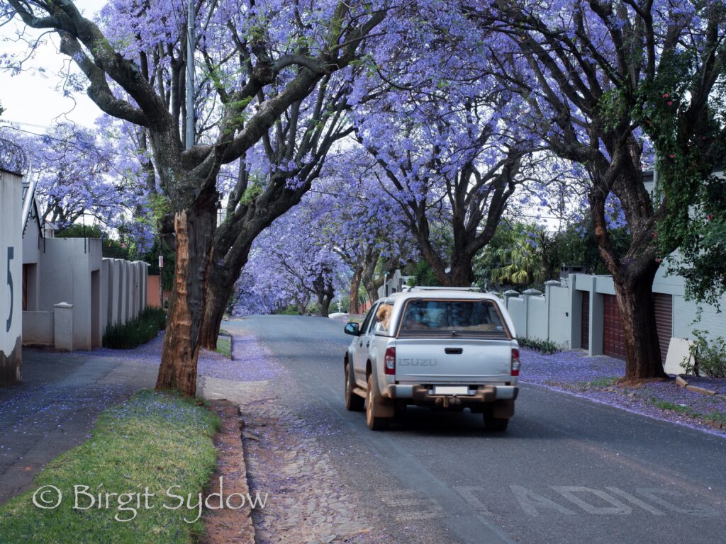 Wieder am Lucky Bean Guesthouse angekommen, erholten wir uns ein bisschen und machten uns auf einen Streifzug durch die Straßen des Stadtteils um Jacarandabäume zu fotografieren. Der Jacarandabaum ist kein einheimischer Baum, sondern wurde aus Südamerika importiert.