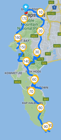 Cape Town – Stellenbosch: gefahrene Kilometer: 38 km