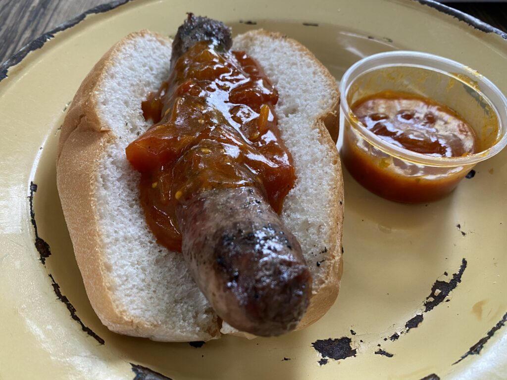In Tschokwane gönnten wir uns eine Kudu Wors Roll bevor es auf den letzten Teil der Strecke ging. Gut gestärkt und Blasen-technisch erleichtert ging es weiter zu unserer nächsten Unterkunft, nach Skukuza, über die H1-2.